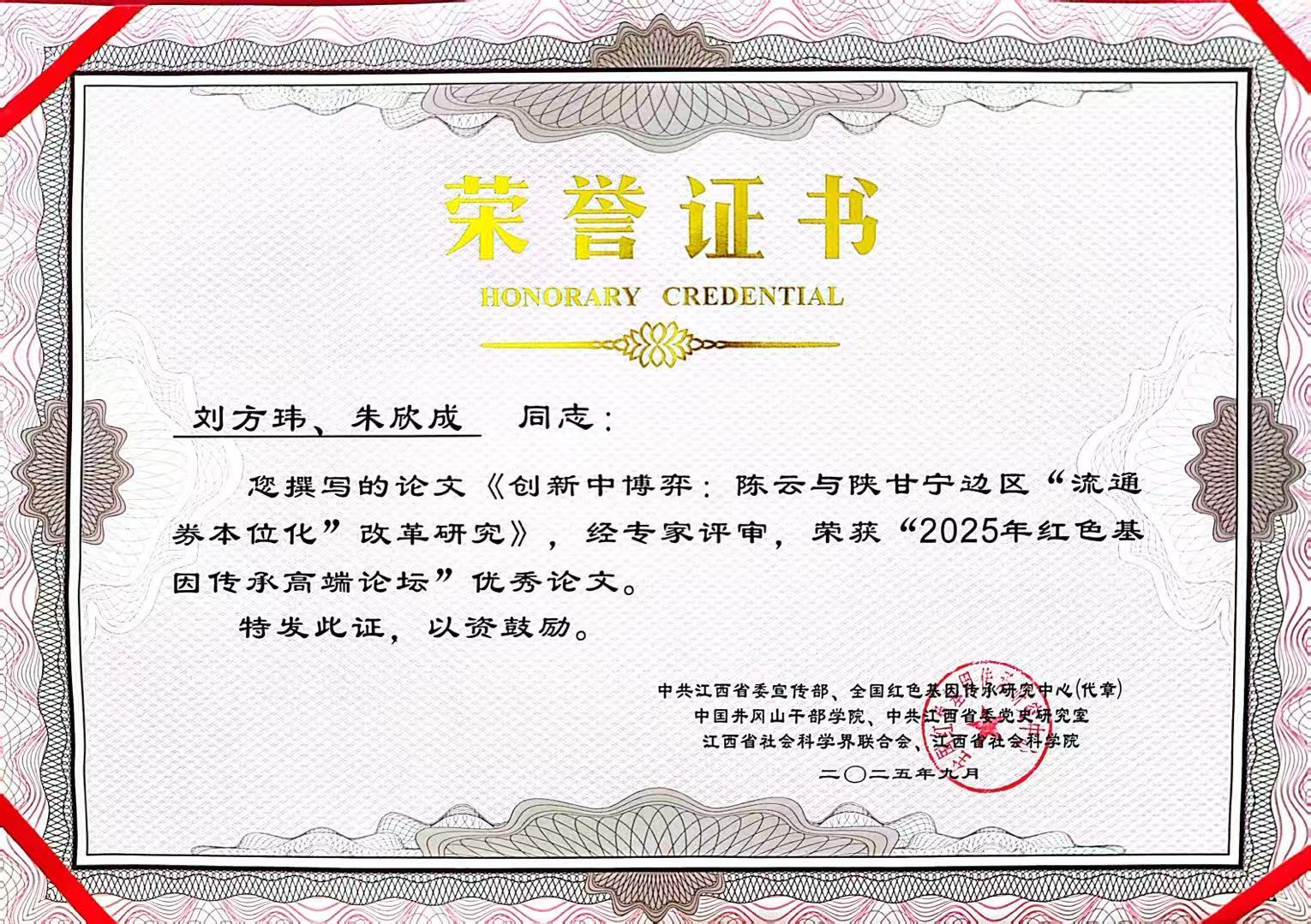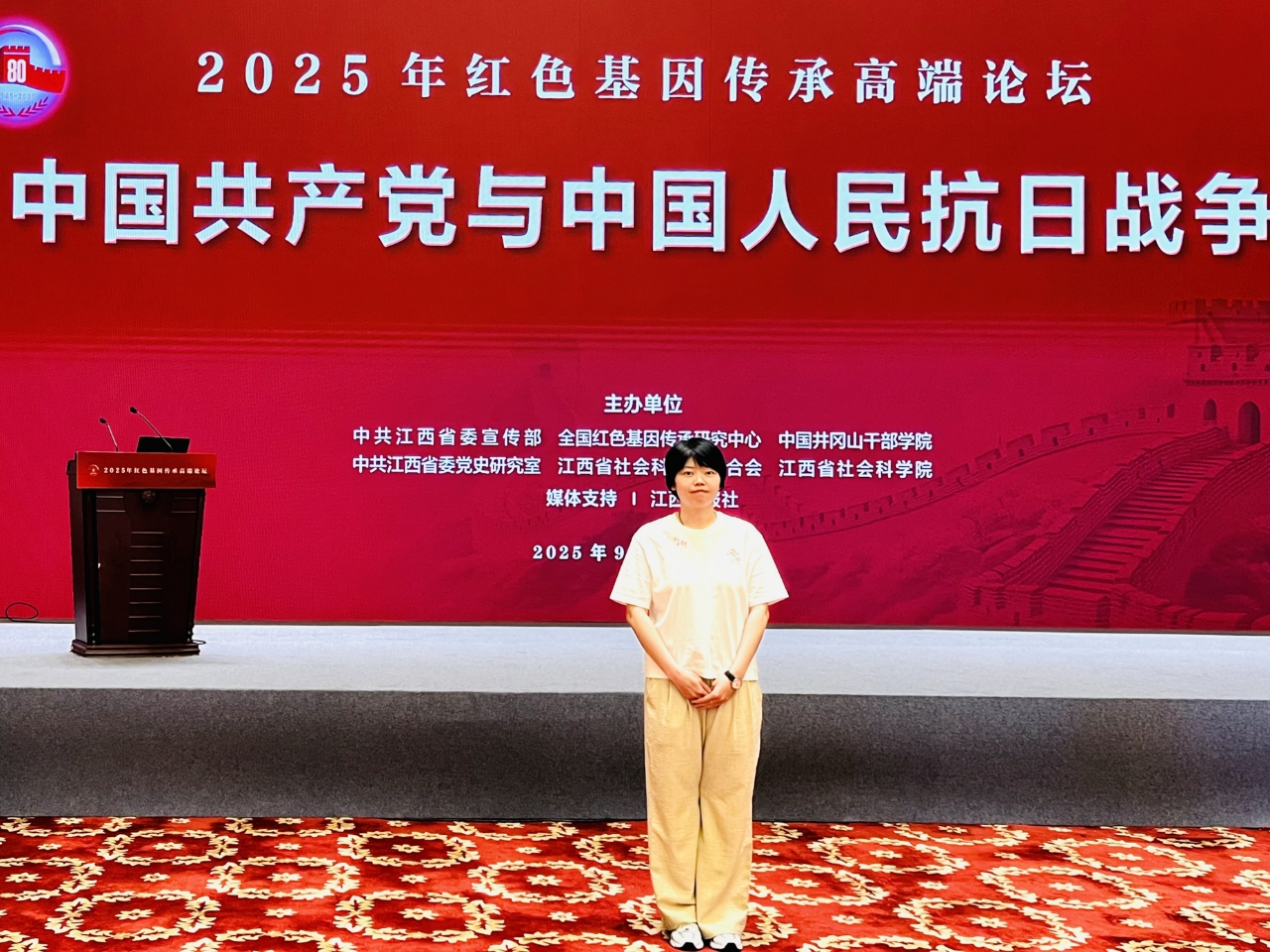 9月13日—15日,由江西省委宣传部、全国红色基因传承研究中心、中国井冈山干部学院、中共江西省委党史研究室、江西省社会科学界联合会、江西省社会科学院等单位联合主办的“2025年红色基因传承高端论坛”在江西南昌成功举办。我校马克思主义学院青年教师刘方玮作为优秀论文作者代表应邀参会。