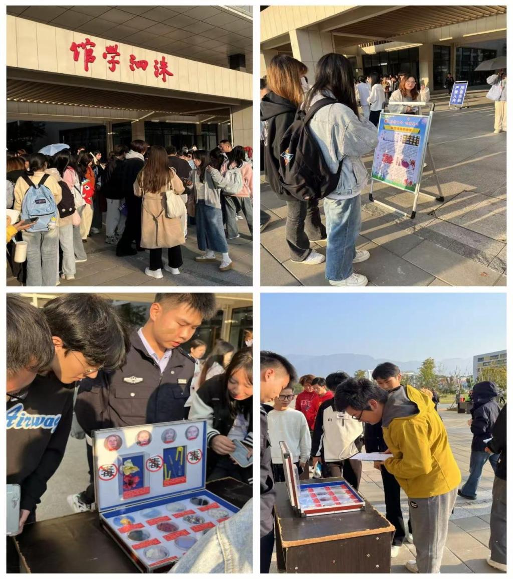 为进一步巩固、扩大我校毒品预防教育成果,不断增强在校大学生识毒防毒拒毒的意识和能力,构建和谐、平安、文明校园,11月12日,马克思主义学院邀请我校思想政治教育基地共建单位——九江市强制戒毒所,在八里湖校区开展了主题为“无毒青春 筑梦未来”的禁毒宣传教育活动。