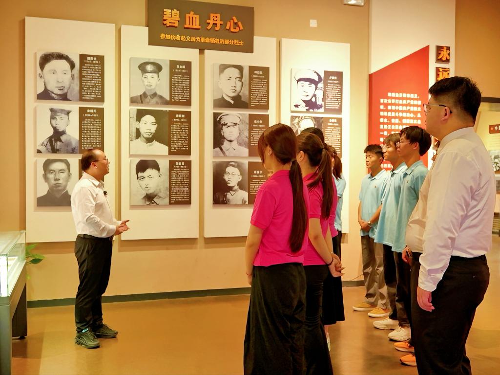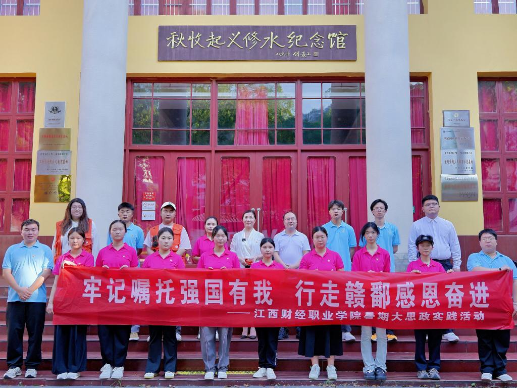 为全面深入贯彻习近平总书记考察江西重要讲话精神,用丰富的红色资源推进思政课建设,进一步推动爱国主义教育,7月7日至8日,江西财经职业学院思政课教师、城乡建设学院党总支书记胡红霞带队赴九江市修水县秋收起义修水纪念馆开展暑期大思政实践活动,思政课老师张天明、雷丽和文化旅游学院部分学生参加。