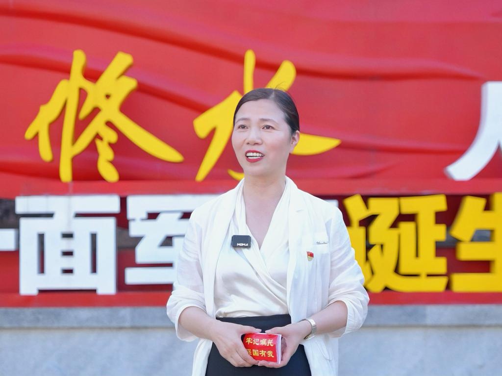 秋收起义修水纪念馆讲解员李瑶娣为同学们讲述了“第一面军旗”诞生的背景,解读了“第一面军旗”的丰富内涵。她强调,中国工农革命军第一军第一师是中国共产党领导下的工农革命武装。