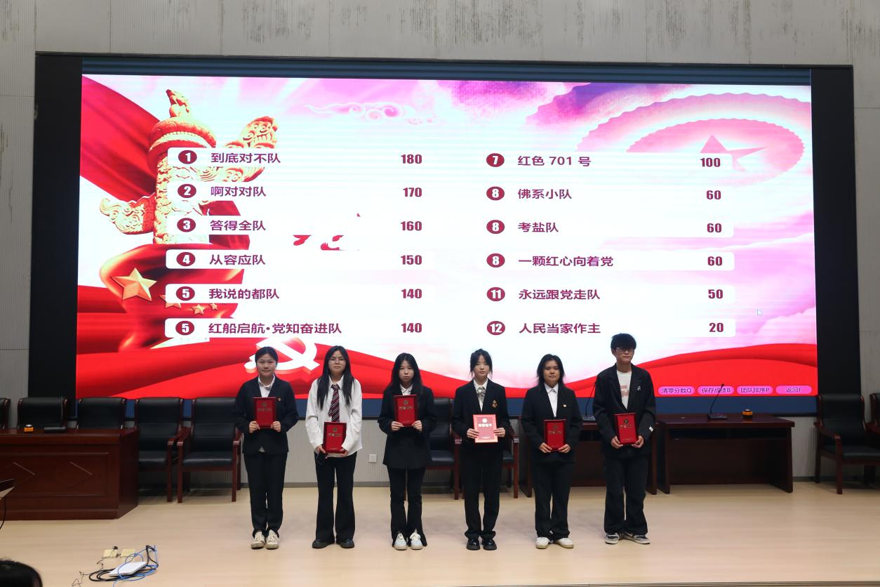 在必答题环节,选手们镇定自若、从容应答,尽显扎实功底。风险题环节则紧张激烈、扣人心弦,尽展青春锋芒。随着赛程推进,题目难度层层递进,现场气氛愈发紧张而热烈。各参赛队伍团结一心、配合无间,凭借丰富的知识储备、敏捷的思维反应和极高的答题正确率,赢得了在场师生的阵阵喝彩。